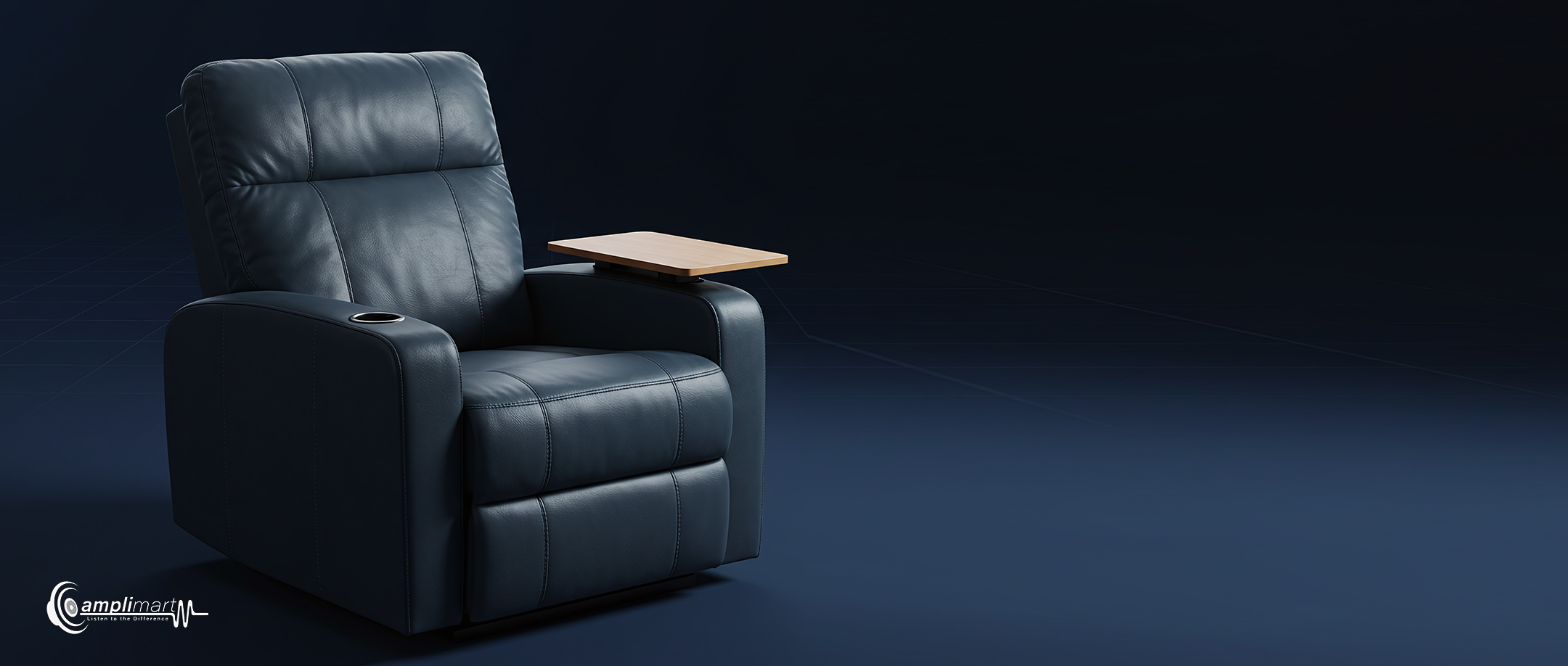 Foldable tables for snacks and devices—smart, sleek, and made for home cinema comfort.